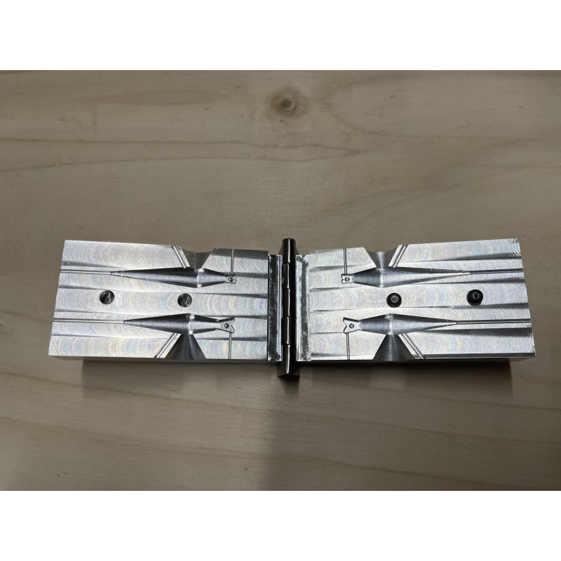 Molde de aluminio mecanizado, con dos cavidades para poteras plomadas de 15 y 18 gr aproximadamente. Varilla 1.5mm.