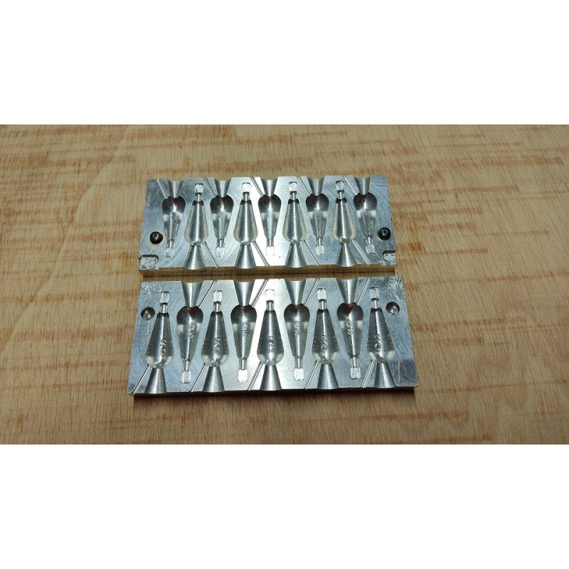 Molde de aluminio mecanizado. Plomo Lagrima con giratorio 20 gr aproximadamente con un total de 9 cavidades. Diámetro giratorio 3.4mm.