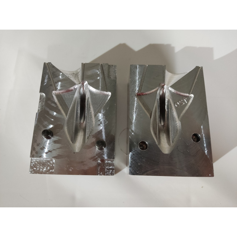 Molde aluminio mecanizado, potera plomada de dos cavidades con gramaje de 10 grs. aproximadamente. varilla hasta 1.5mm.