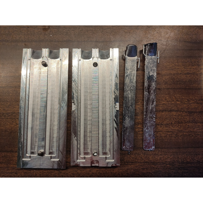 Molde aluminio mecanizado. Plomo para potera con gramajes de 8, 9 y 10 gramos.