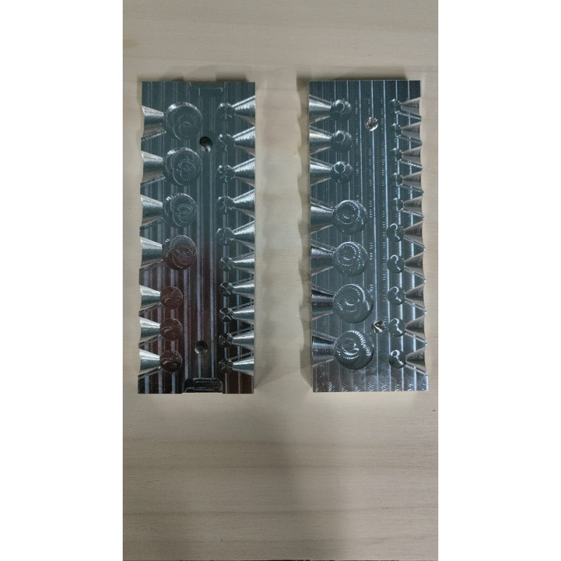Molde aluminio mecanizado. Monedas para regular peso de las poteras con diámetros de 5 cavidades 8mm, 7 cavidades de 10mm y 5 cavidades de 12mm con espesor de 3mm y gramajes de aproximadamente 1,6gr, 2,5gr y 3,7gr.