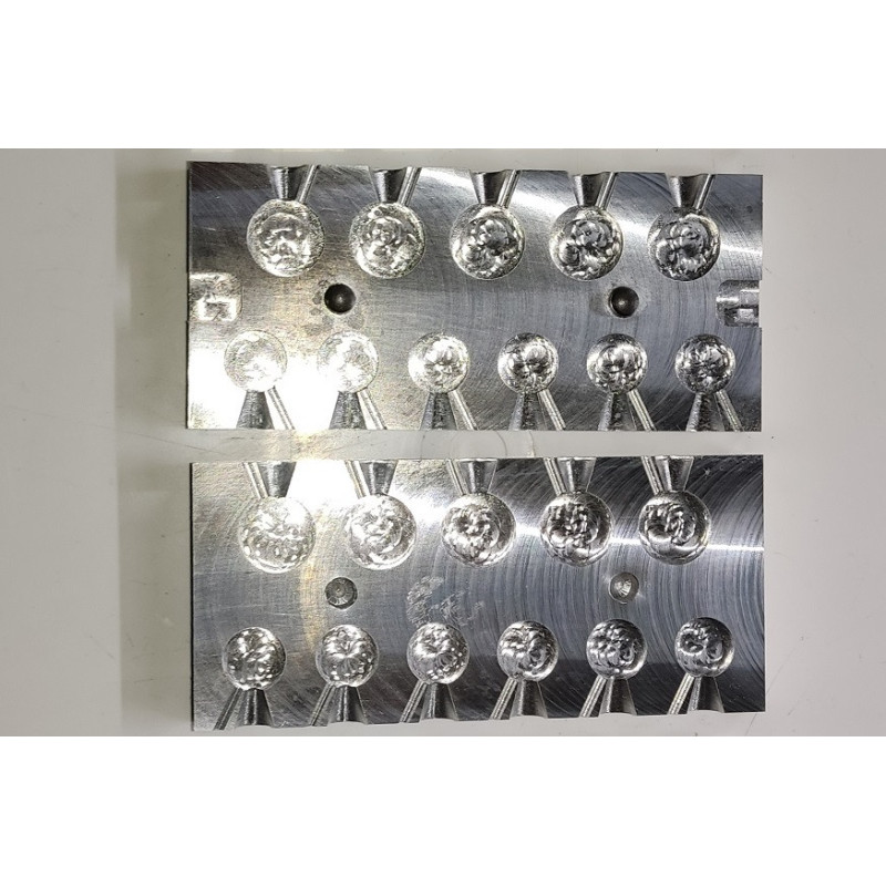 Molde aluminio mecanizado. Monedas para regular peso de las poteras con diámetros diferentes de 6 cavidades de 13mm y 5 cavidades de 16mm,con espesor de 3mm y gramajes de aproximadamente 4,3gr y 6,5gr.