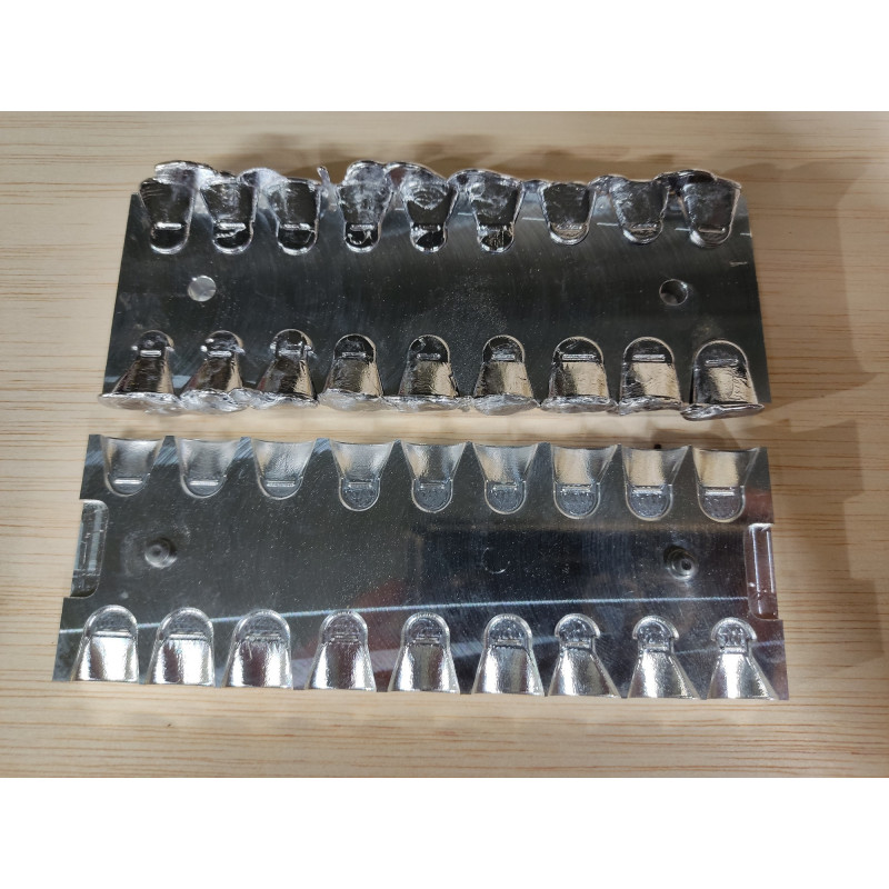 Molde aluminio mecanizado plomos para poteras de 14 cavidades con estos gramajes, 2 de 1gr, 2 de 1.5gr, 2 de 2gr, 2 de 2.5gr, 2 de 3gr, 1 de 3.5, 1 de 4gr, 1 de 4.5gr y 1 de 5gr. Aproximadamente.